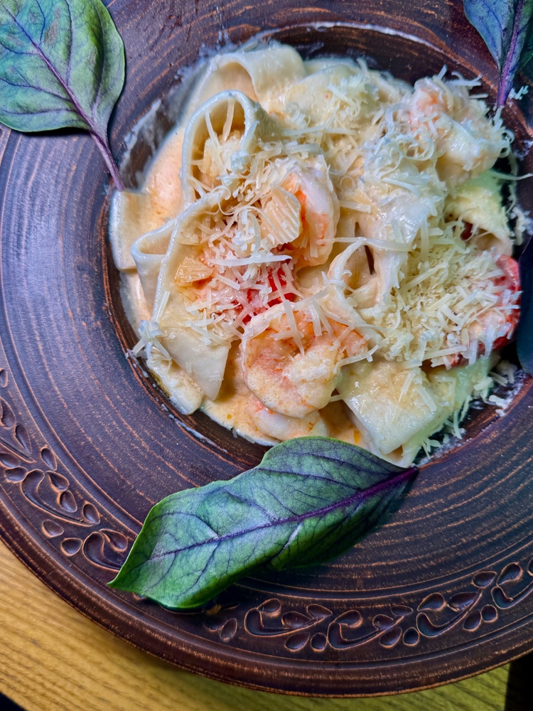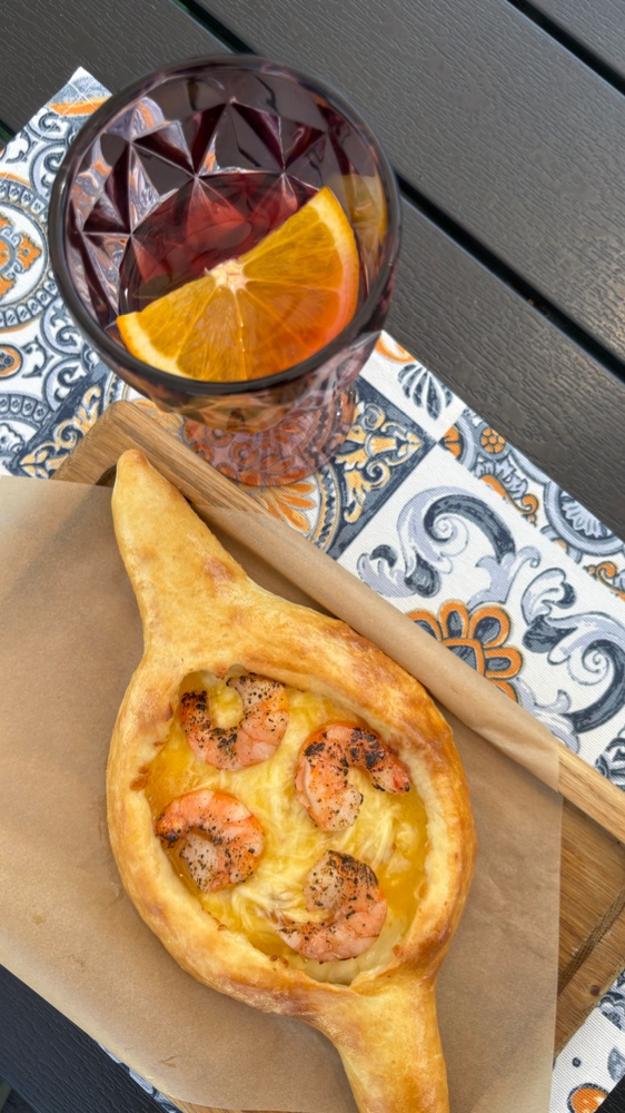 Хачапурі по-Аджарські з креветкою обсмаженою в самбуці та пармезаном 400г