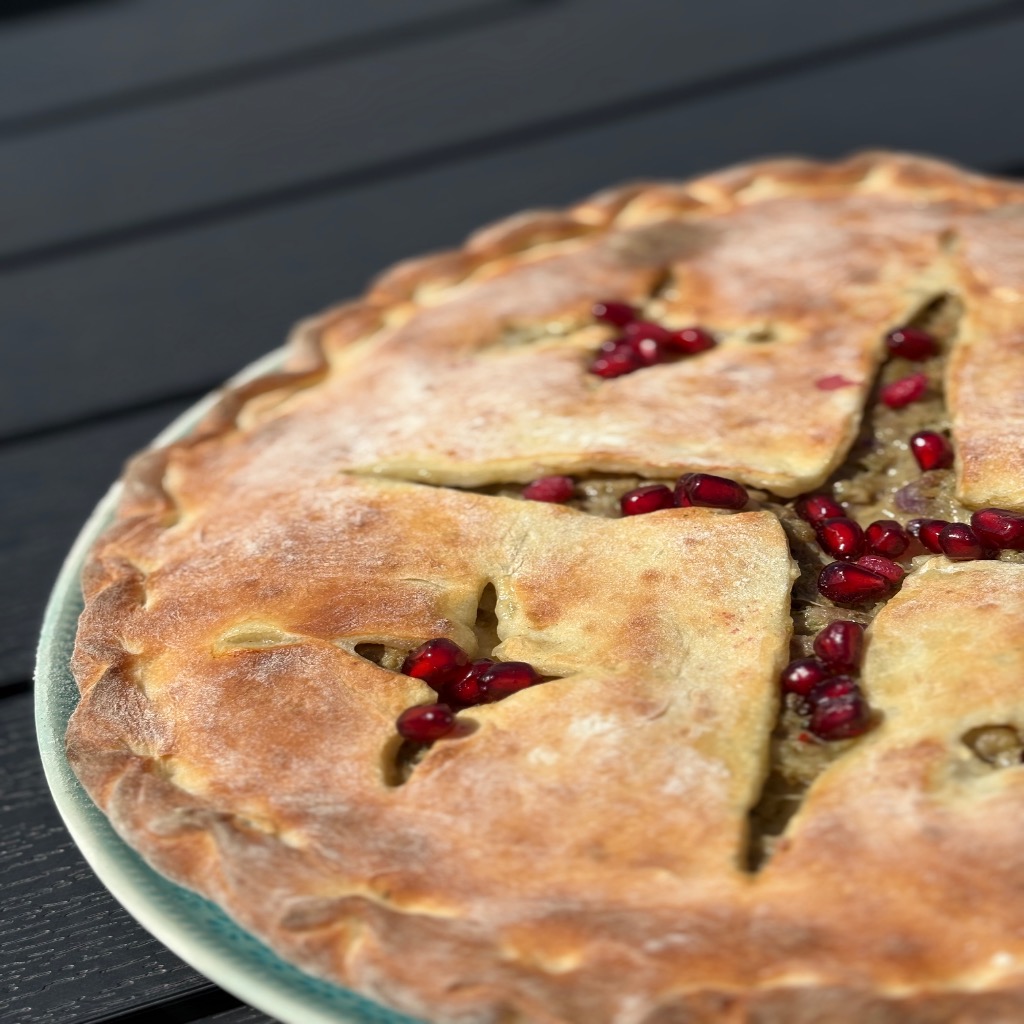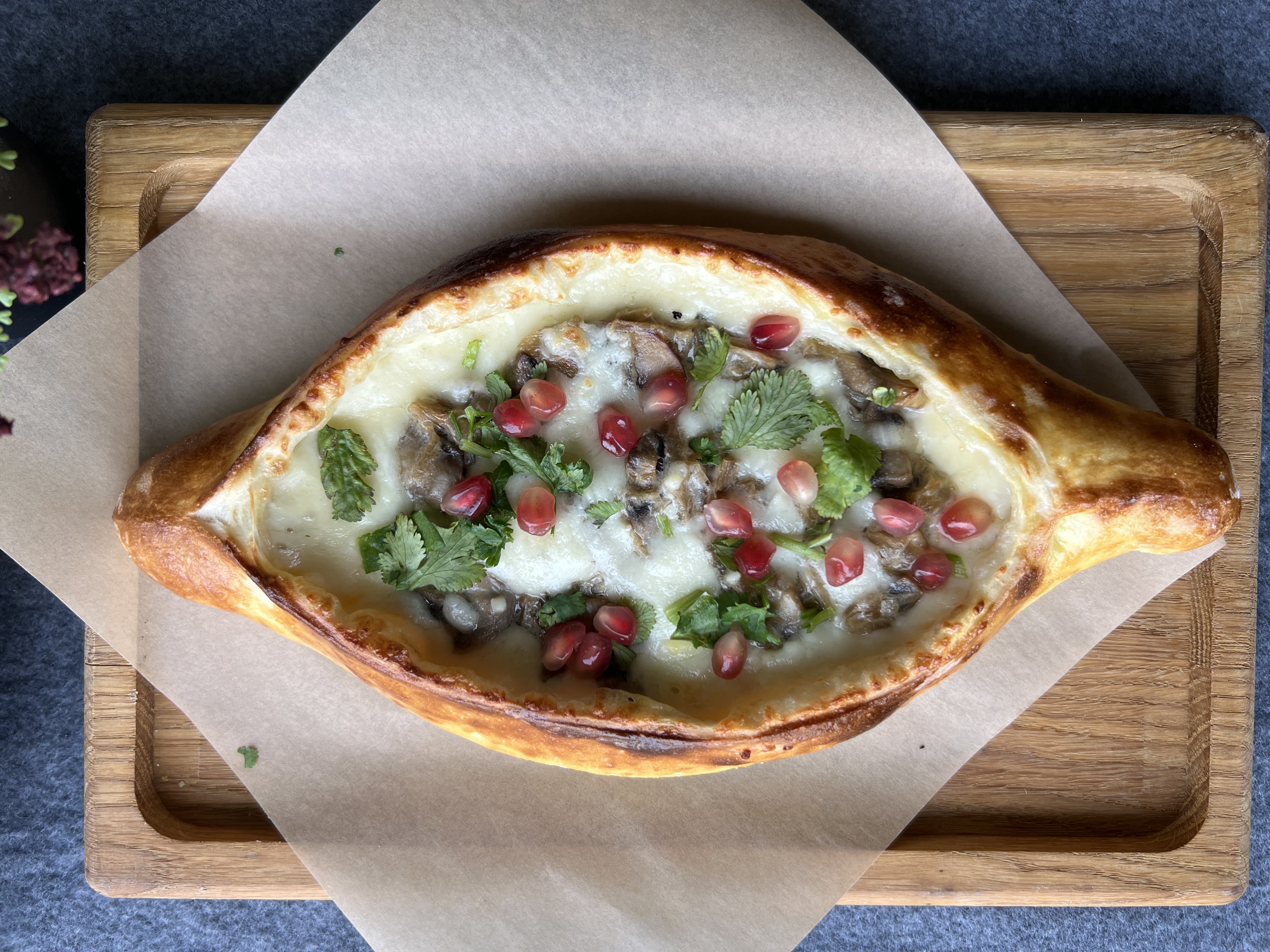 Хачапурі з обсмаженими печерицями, цибулею та гранатом 400г.