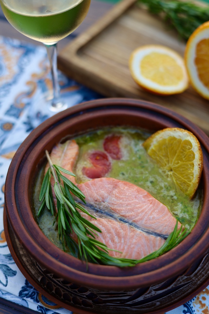 Філе лосося запечене у кеци з соусом шкмерулі (за 100г.)