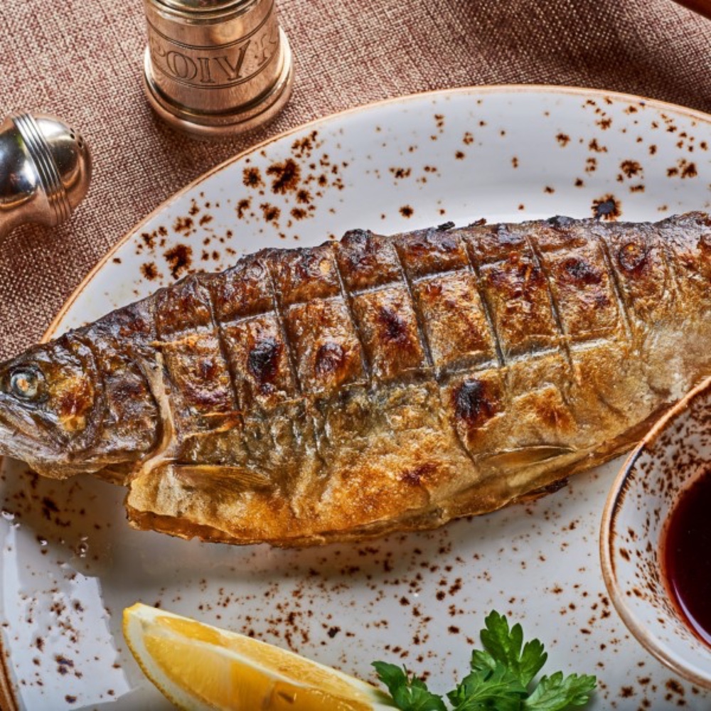 Форель (молода) річна, тушка 1шт з гранатовим соусом