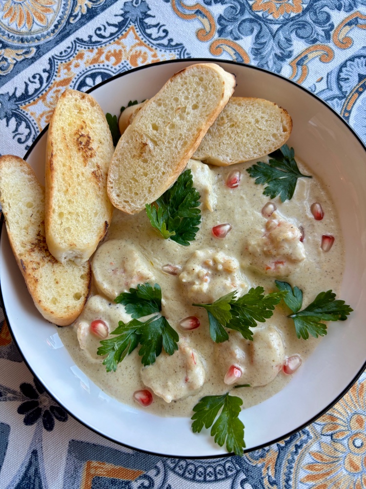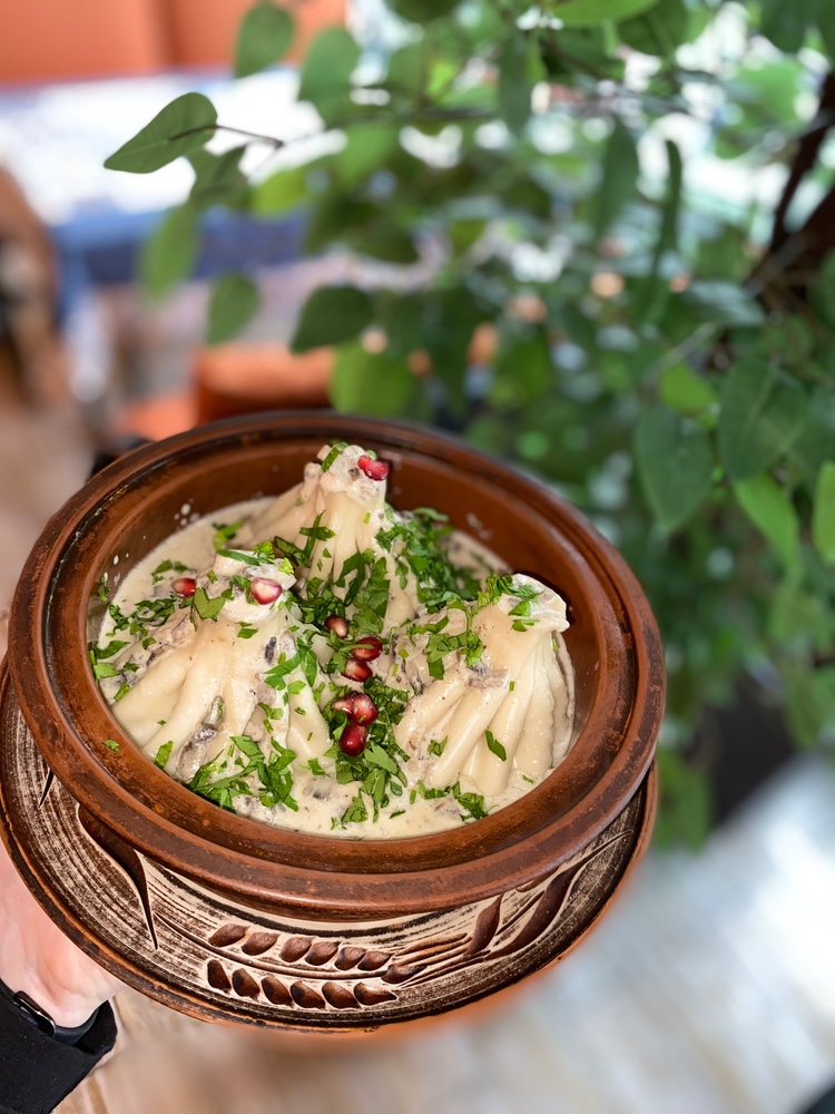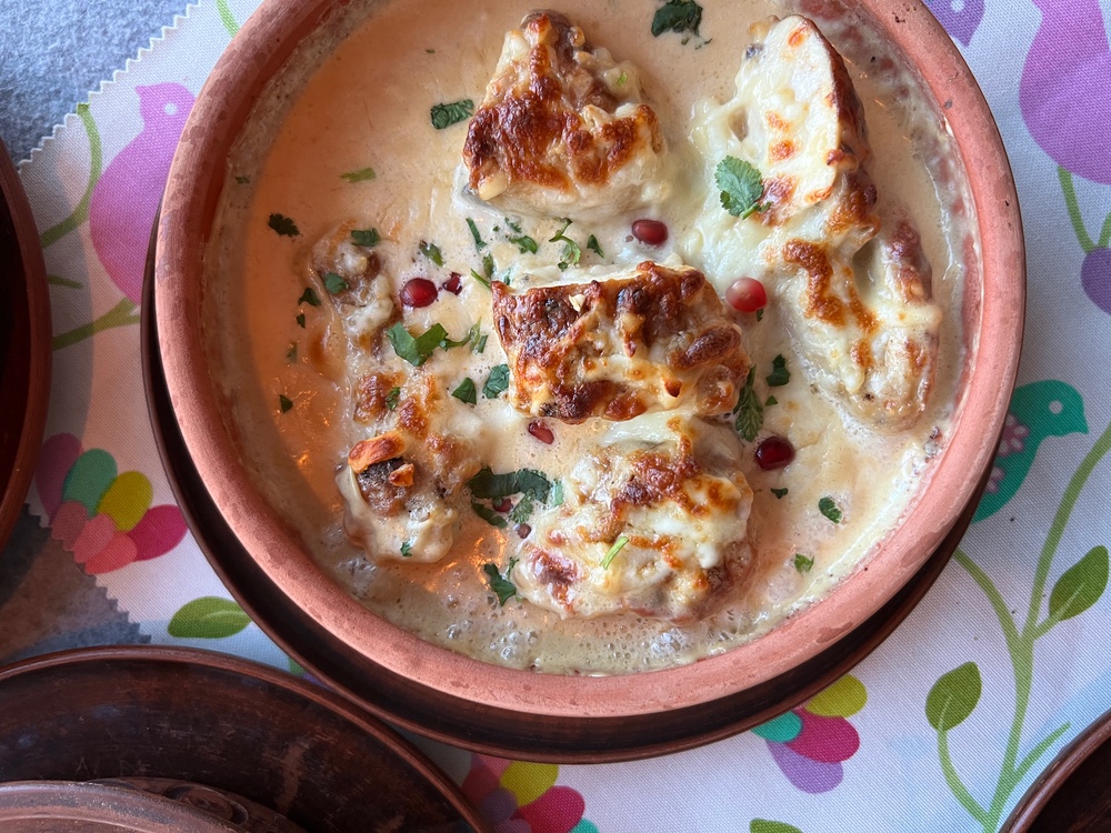 НОВИНКА! Хінкалі-шкмері з куркою та сиром у вершково-часниковому соусі 3 шт.