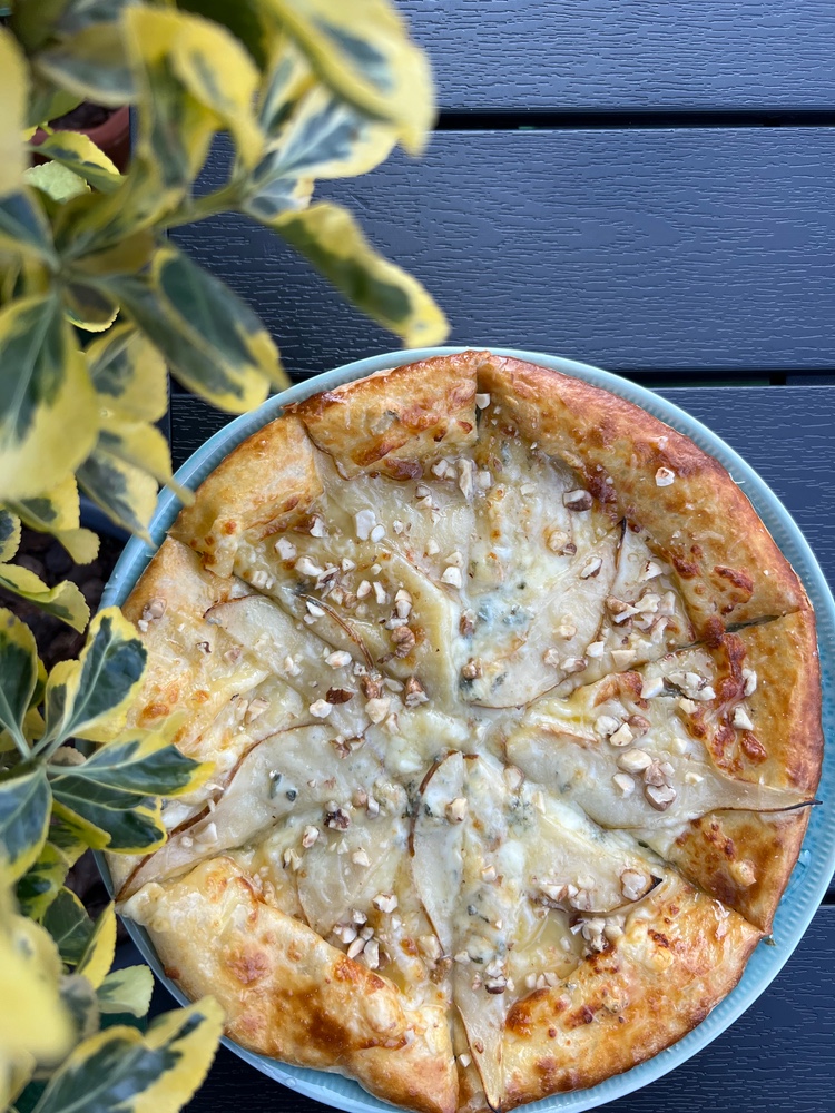 Хачапурідзе по-Мегрельські з сулугуні, домашнім сиром, сир дорблю, сир пармезан, мікс горіхів та медом 450г.