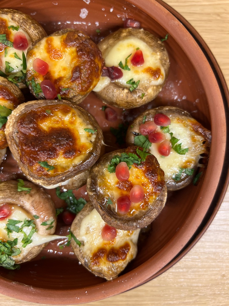 Цілі печериці з сиром сулугуні запечені у кеци 300г.