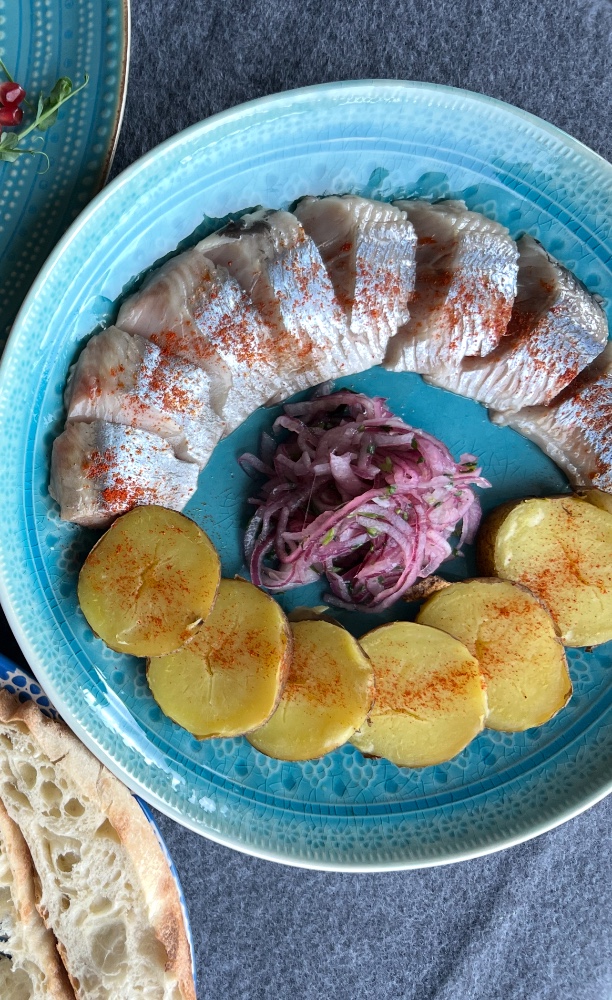 Оселедець з запеченою картоплею та цибулею 300г.