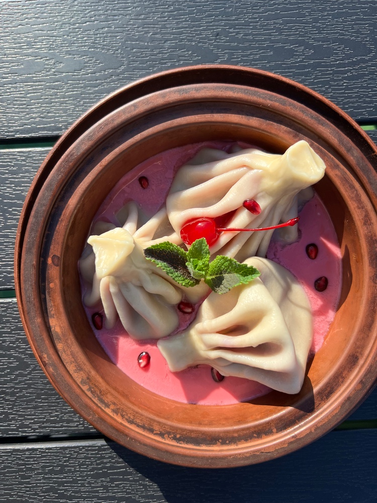 Хінкалі (десертні) з вишнею та йогуртом